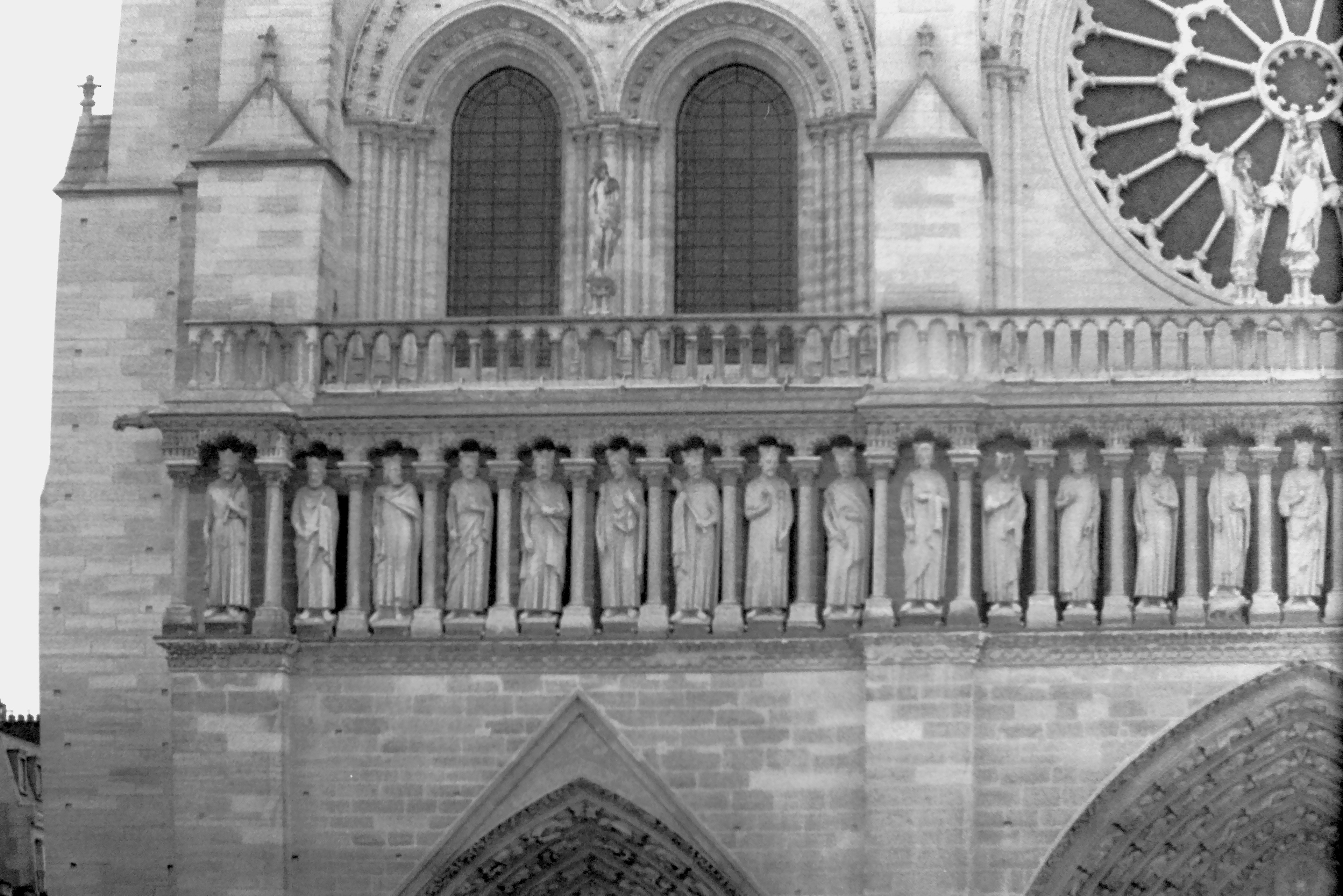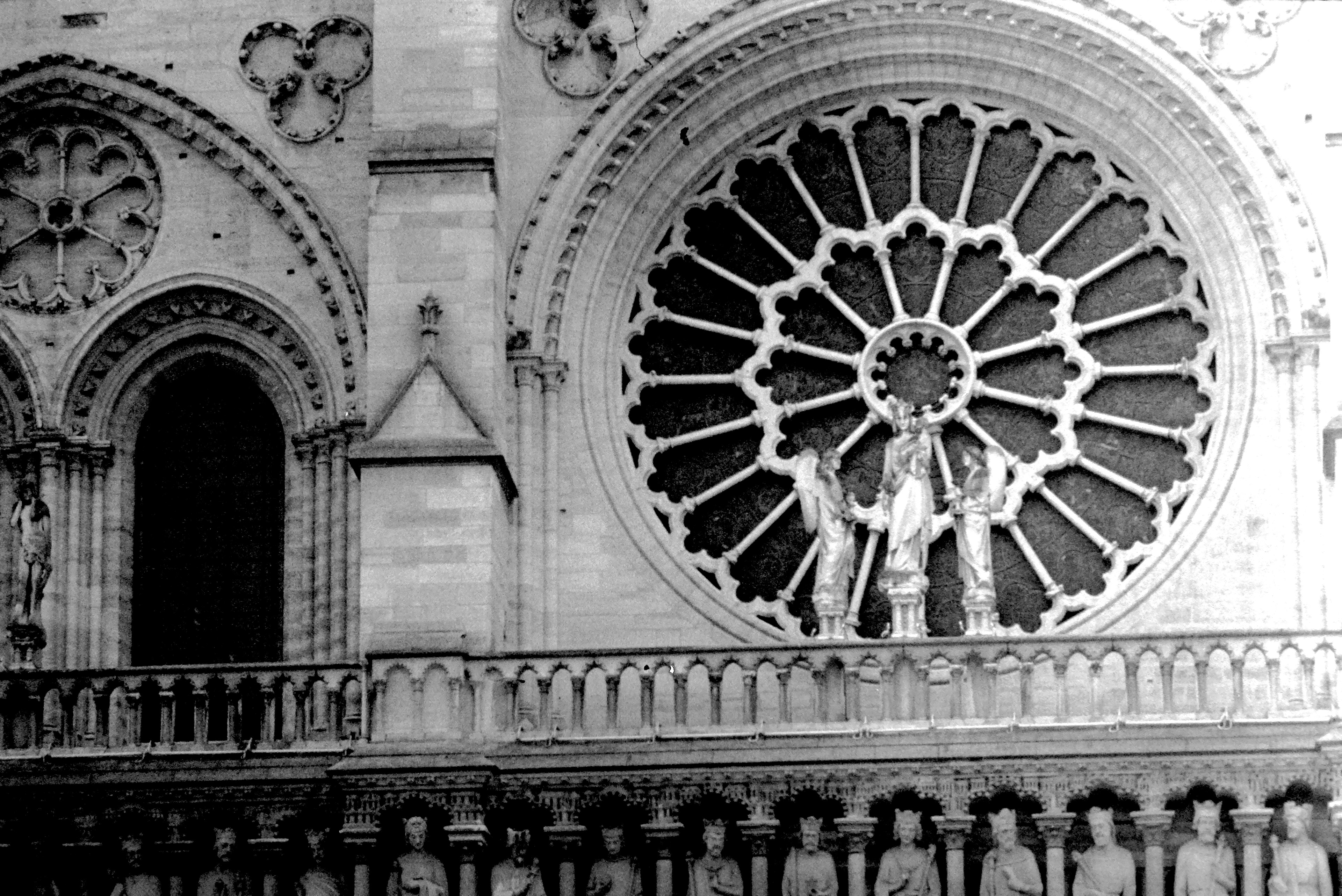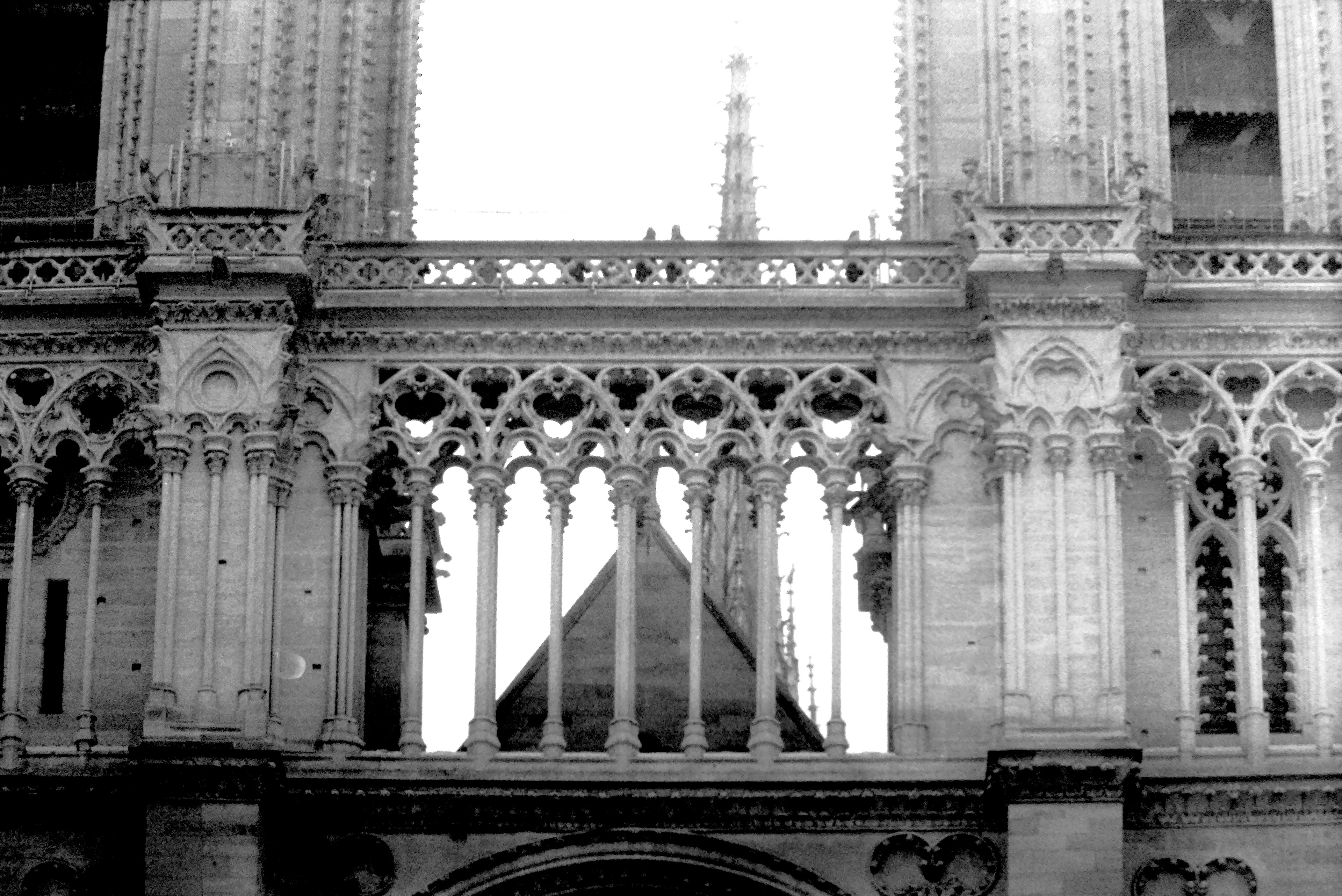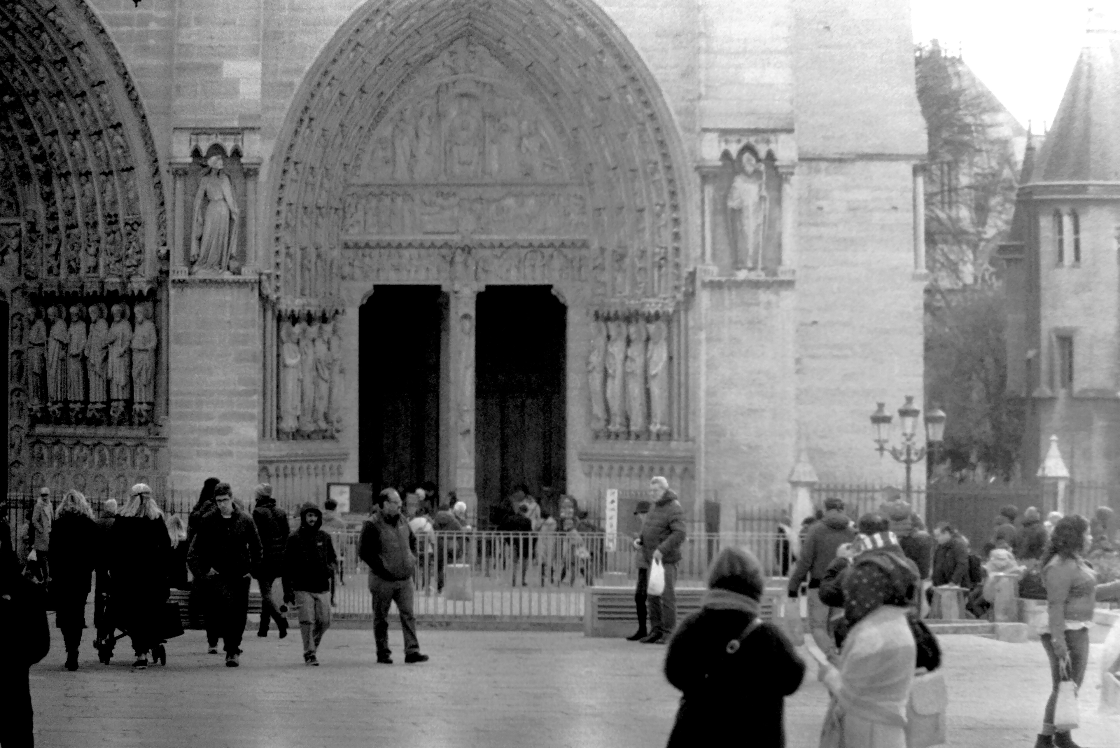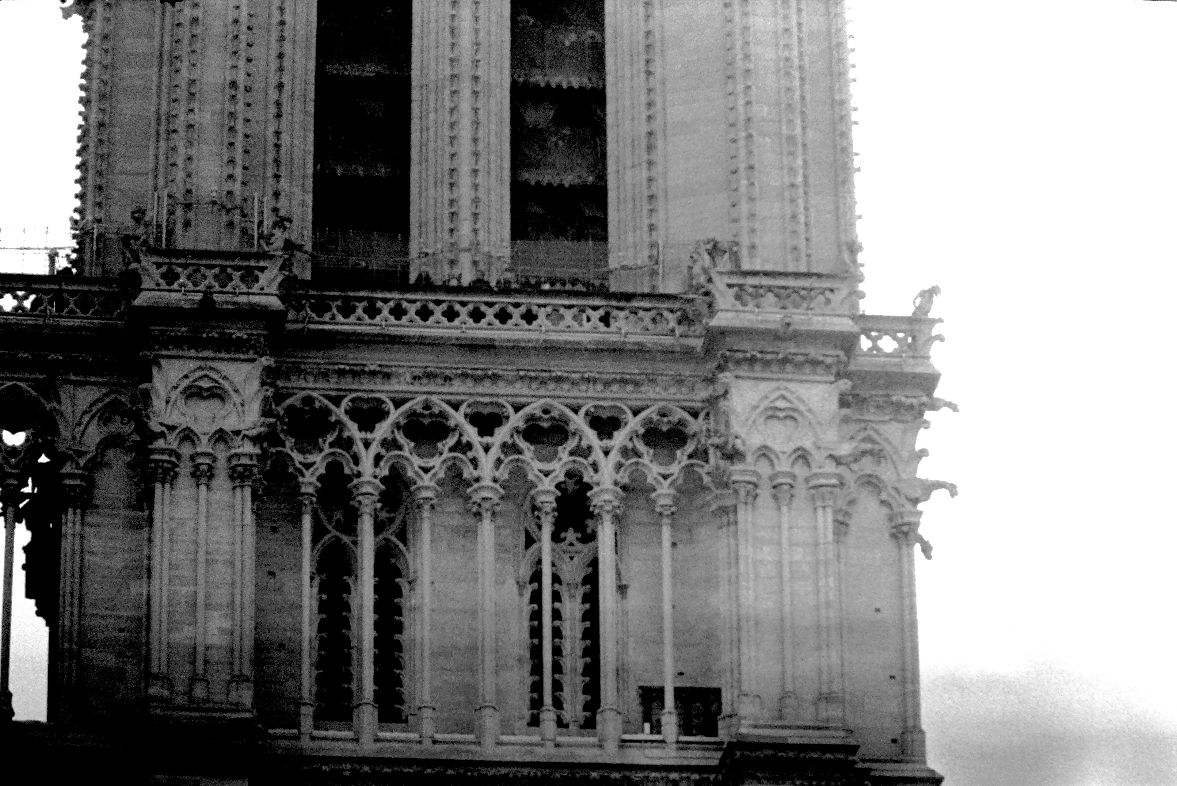 Original 35 mm black and white film photography of Notre Dame before the 2019 fire. Developed and printed myself.