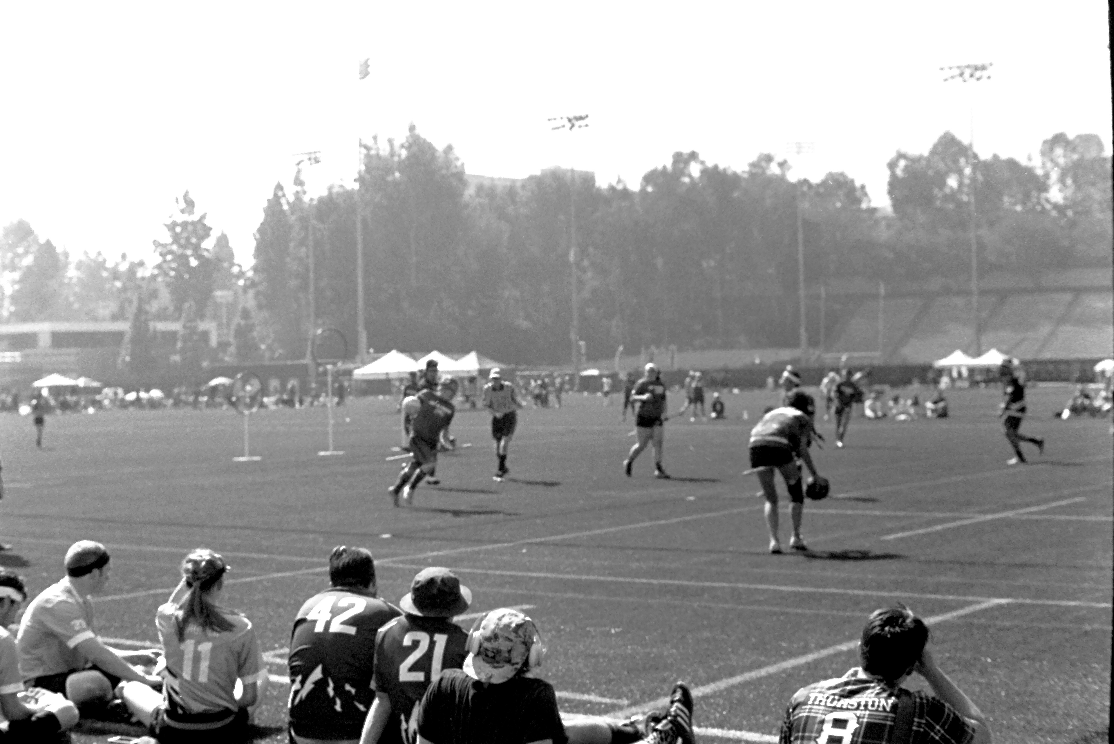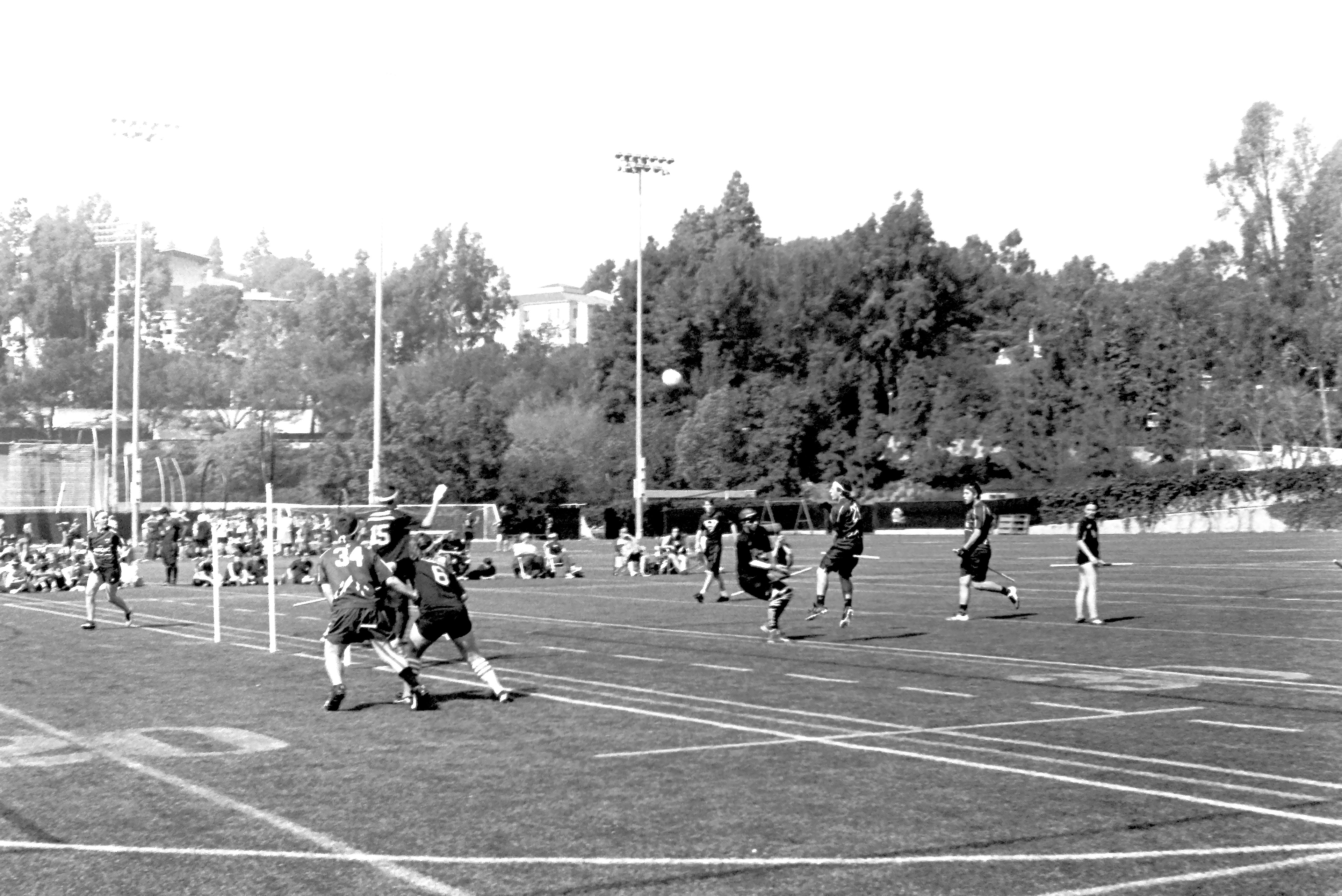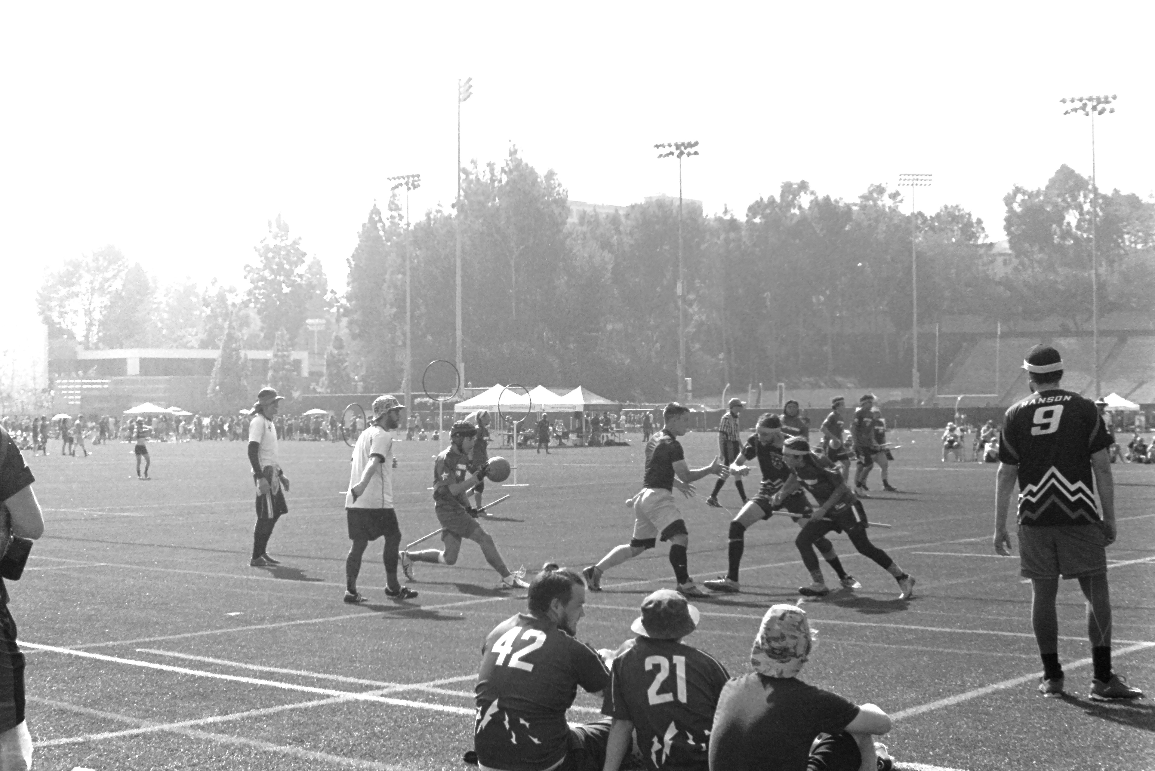 Original 35 mm black and white film photography of a College Quidditch Tournament. Developed and printed myself.