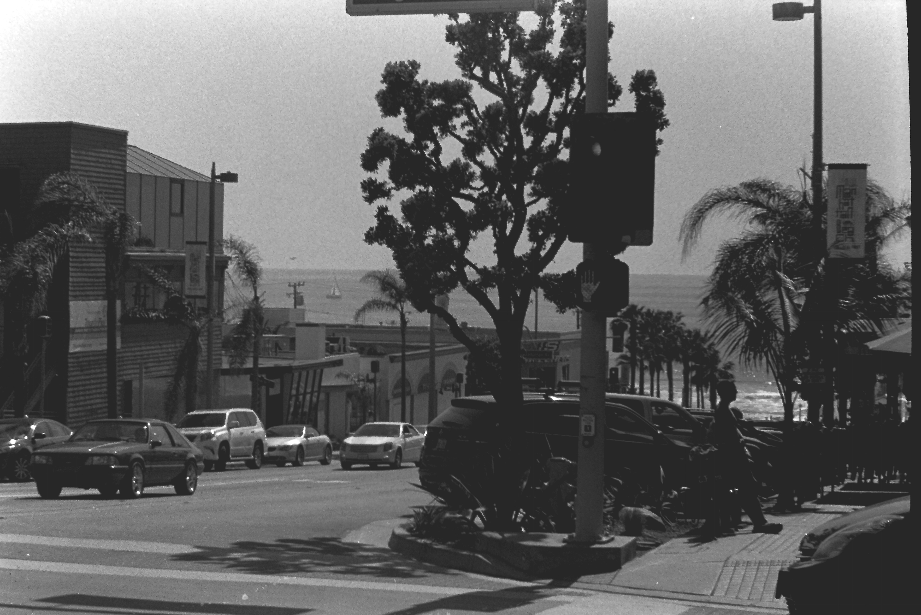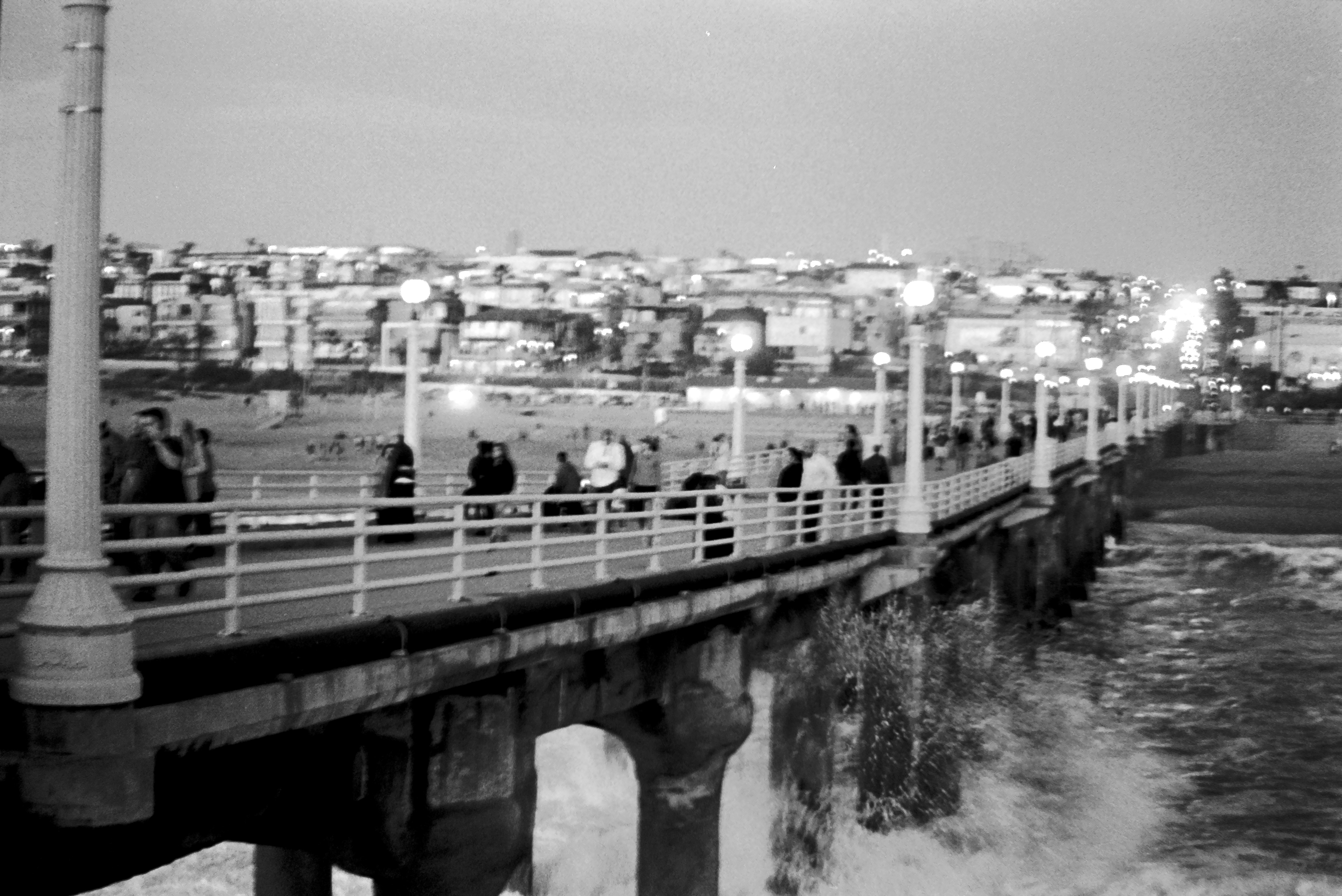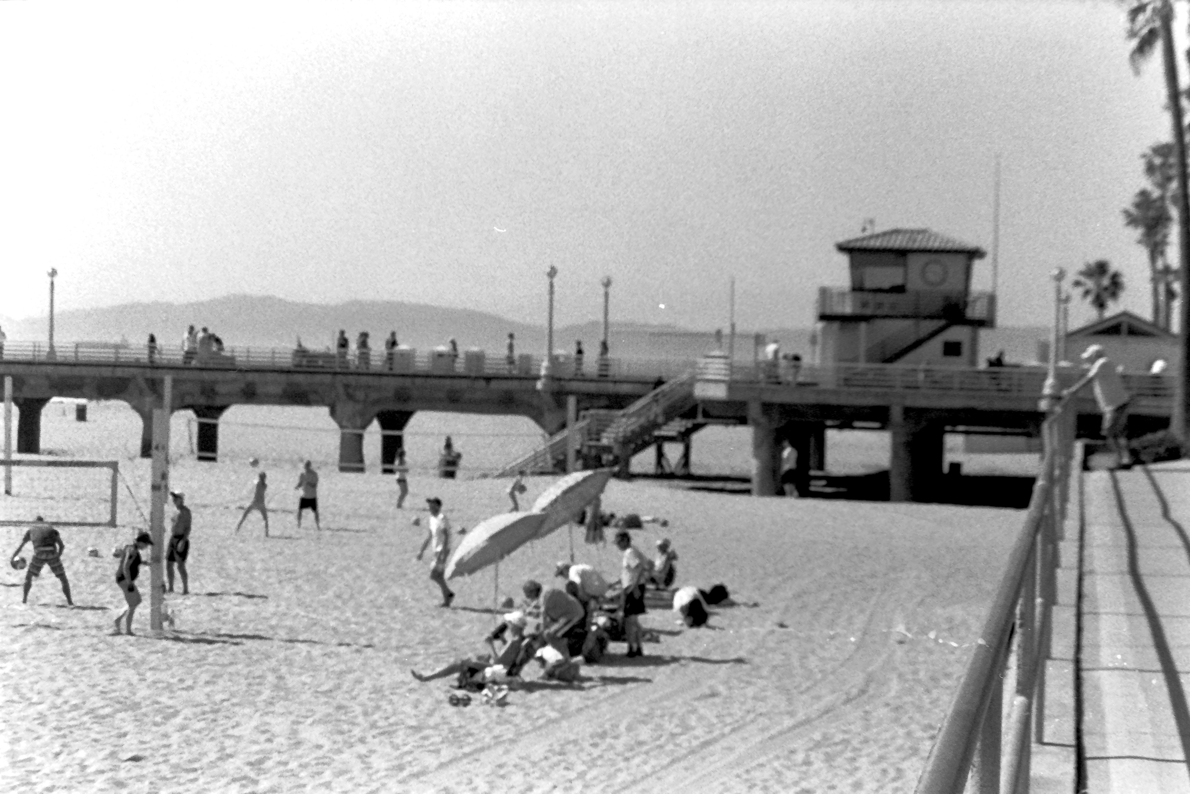 Original 35 mm black and white street photography of Manhattan Beach. Developed and printed myself.